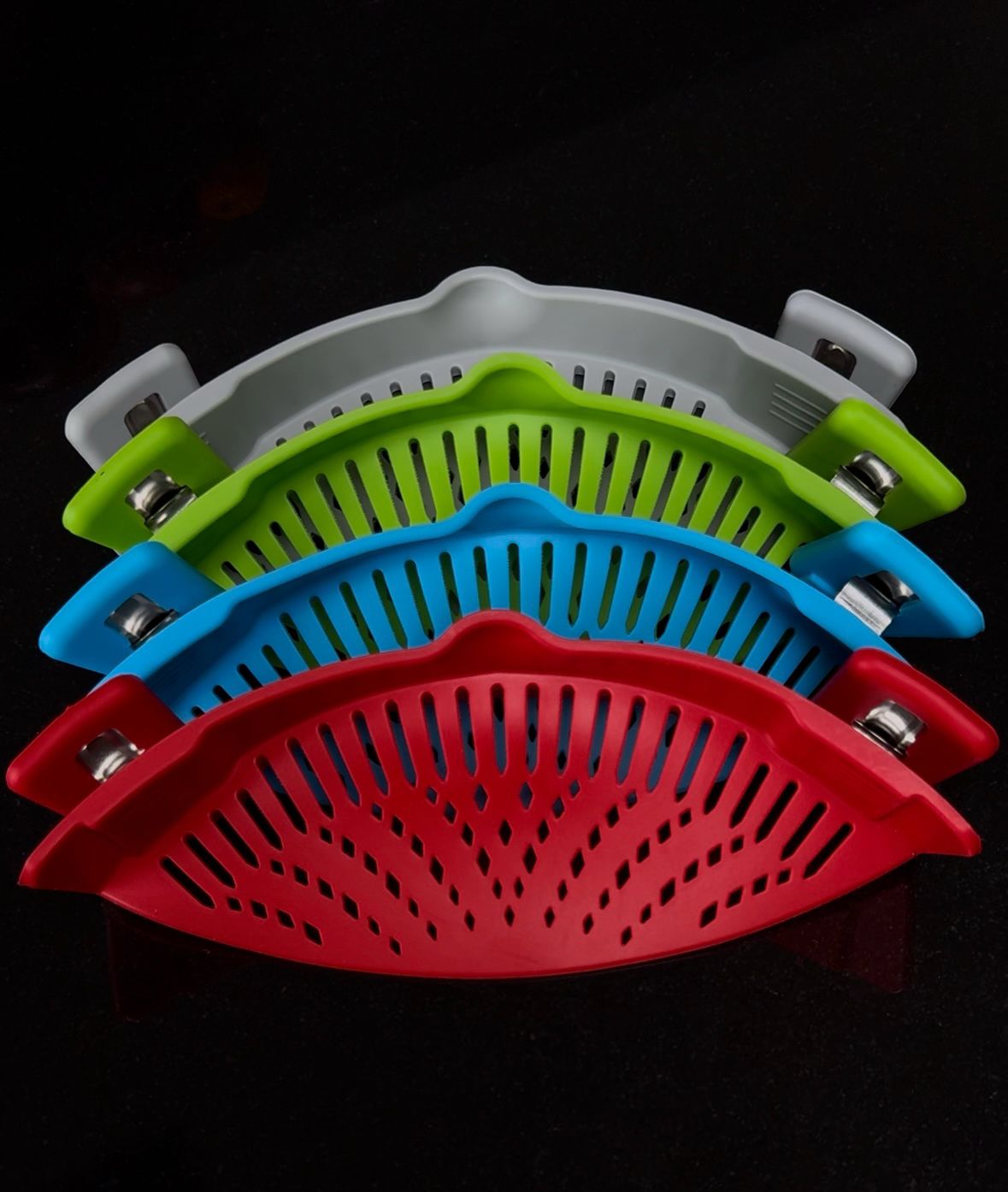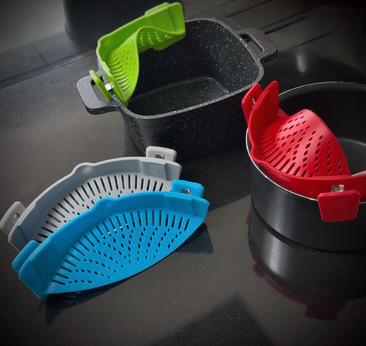 Cette demi-passoire en silicone clipsable s’adapte à la majorité des casseroles, poêles et faitouts. Grâce à ses pinces robustes et son bec verseur, vous égouttez en un clin d’œil, sans salir l’évier.